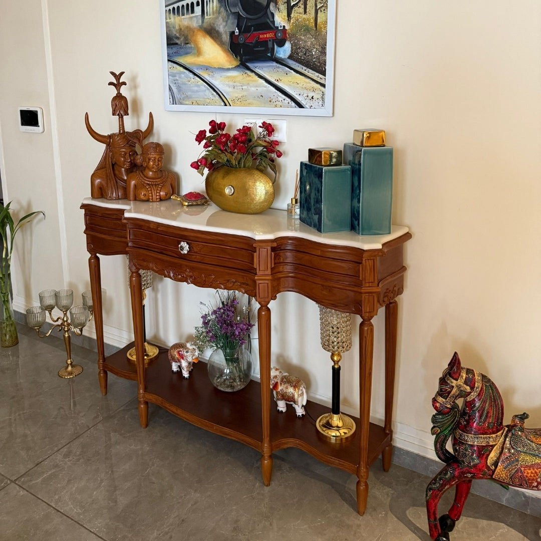 This console has completely transformed our lobby. Its elegant wood finish and marble top add a timeless charm. Guests always compliment it! It's both functional and a beautiful statement piece. Truly the heart of our entrance.