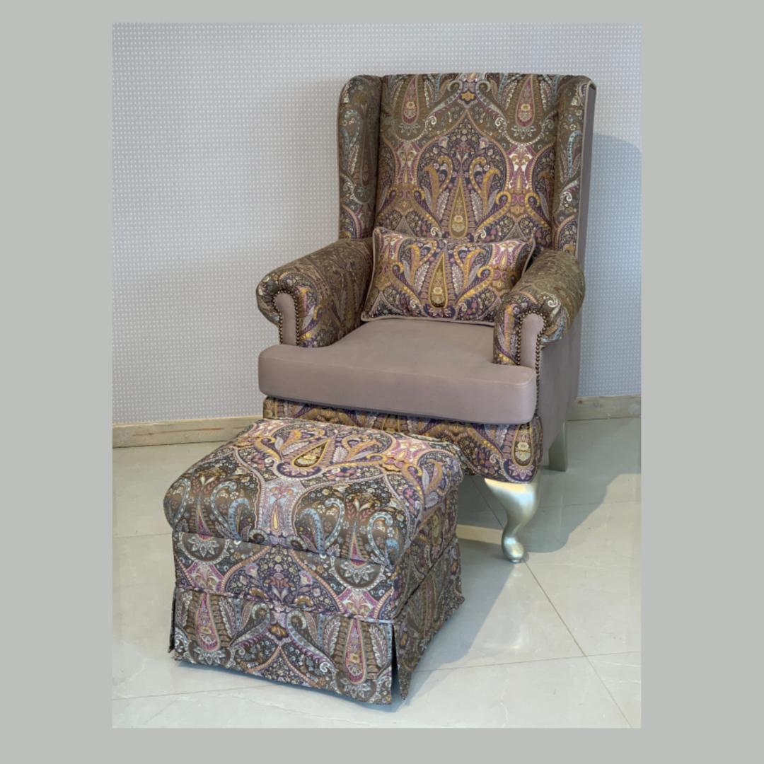 This chair and ottoman from Woods Decor have become my favorite corner at home! The intricate fabric design, plush comfort, and regal presence bring both beauty and relaxation to the space. It's not just furniture—it's a luxurious experience every time I sit down. Absolutely worth it!"