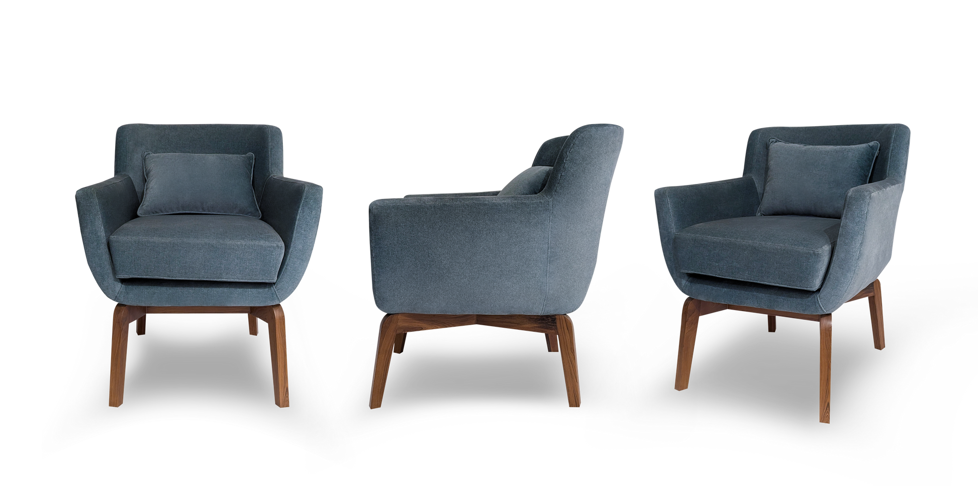 Experience the perfect harmony of elegance and comfort with the Modern Lounge Chair meticulously crafted for modern interiors. Upholstered in soft suede fabric, this statement piece rests on a solid premium teak wood frame, finished in a rich walnut polish that adds warmth and character.